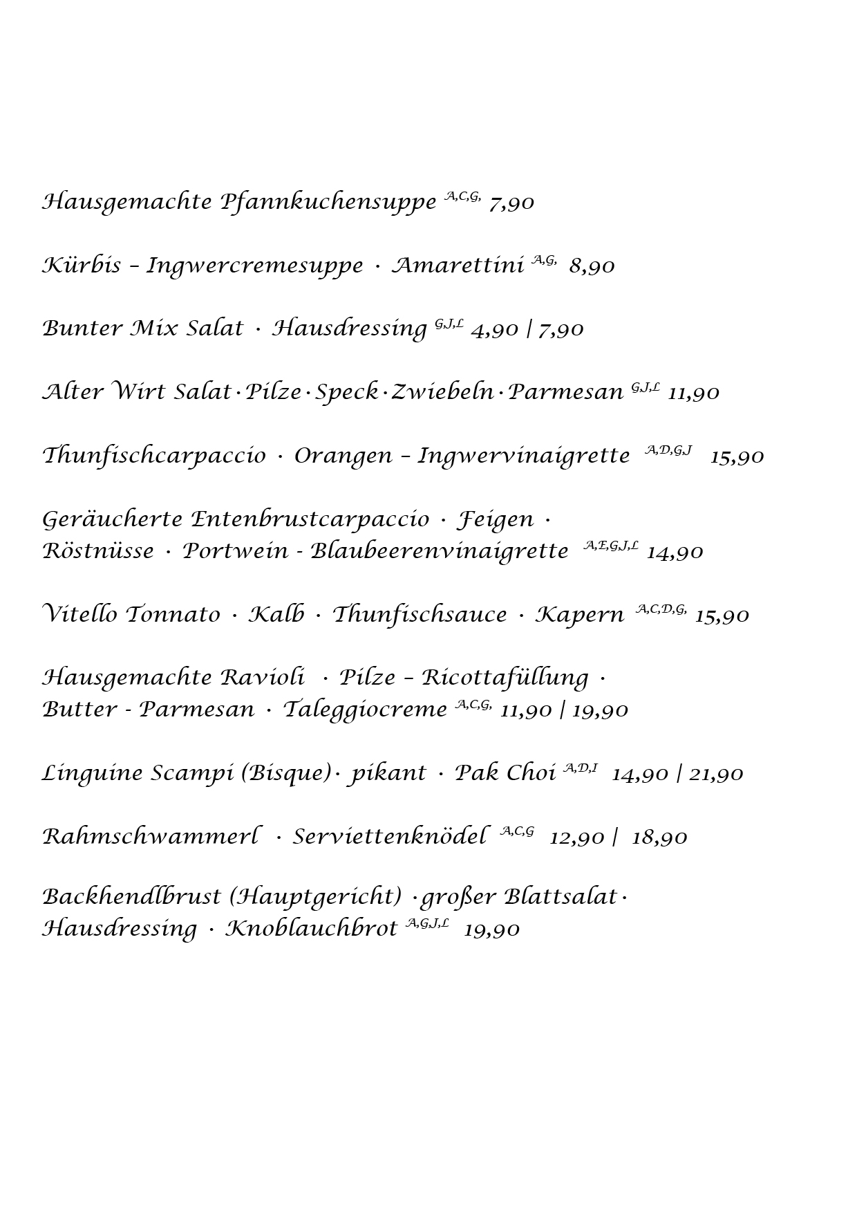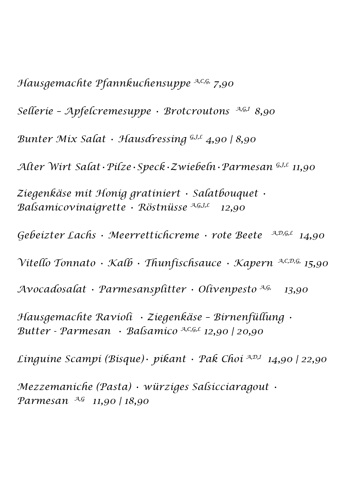 Vorspeisen – Alle Vorspeisen auch zum Mitnehmen – VORSPEISE BESTELLEN 1 Farbstoff – 2 Konservierungsstoff – 3 Antioxidationsmittel – 4 Phosphat – 5 Geschwärzt – Allergene