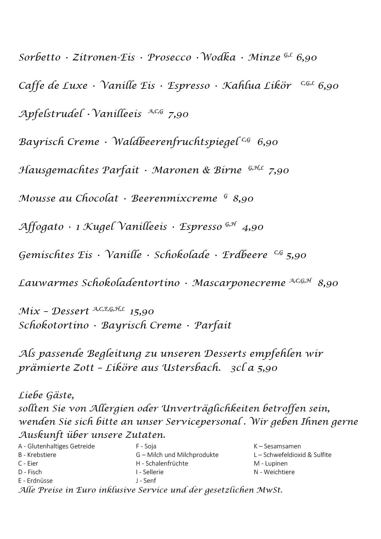 – Alle Nachspeisen auch zum Mitnehmen –